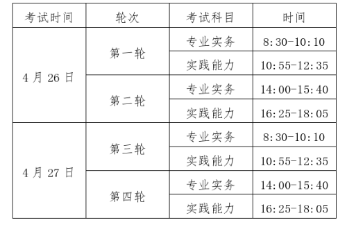 考试时间为:2025年4月26日-27日,每半天为一轮次,考生将随机分配至其中一个轮次。